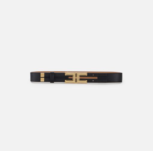 Cintura Pelle Fibbia Logo Nero Elisabetta Franchi