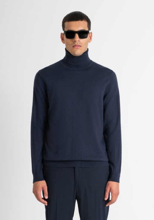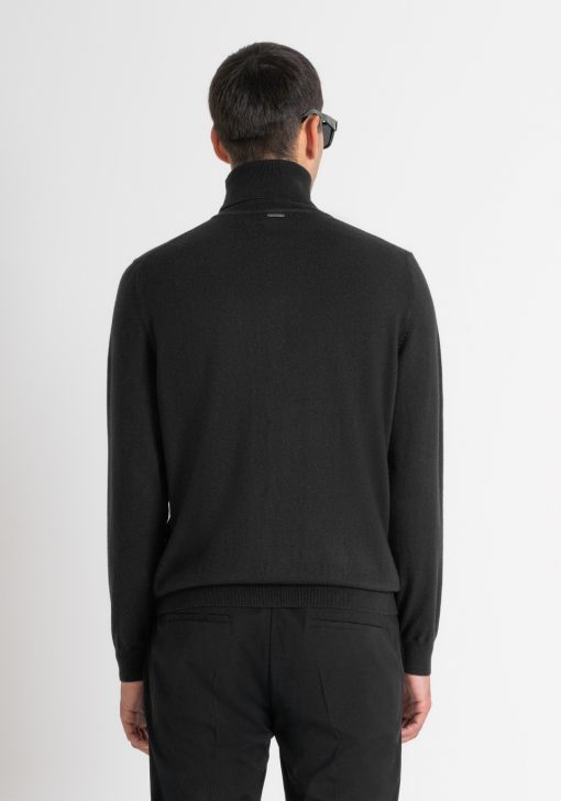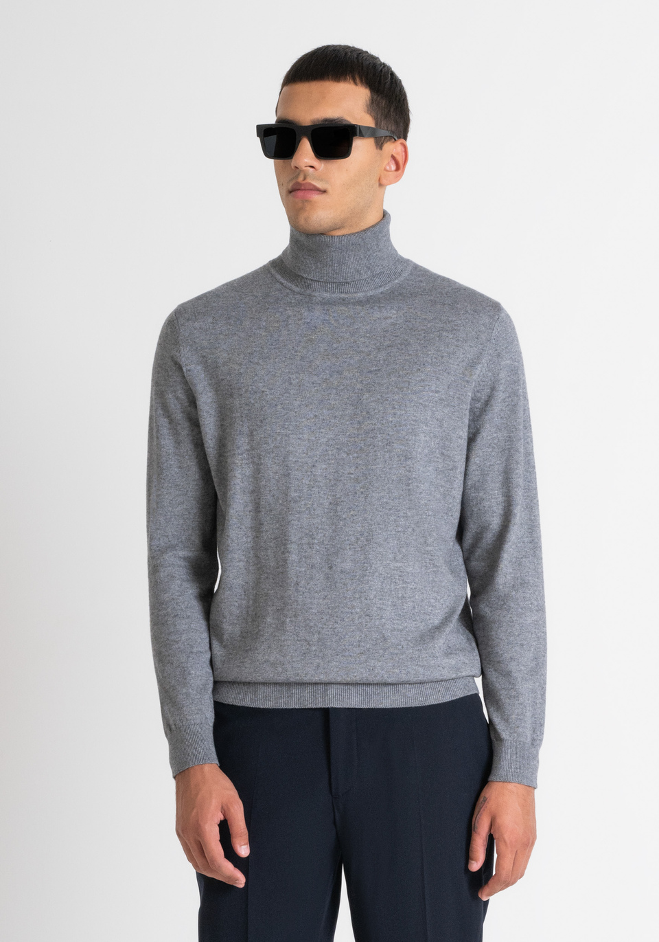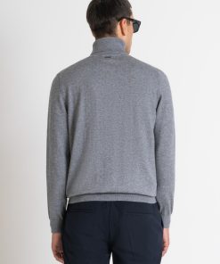 Antony Morato firma questo maglione a collo alto con vestibilità regular. Confezionato in caldo tessuto misto lana e cachemire sarà un alleato perfetto per affrontare la stagione fredda. Declinato in tinta unita, presenta una lavorazione a costine su polsini, fondo e collo. Completa il design la placchetta metallica applicata sul retro.