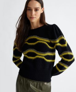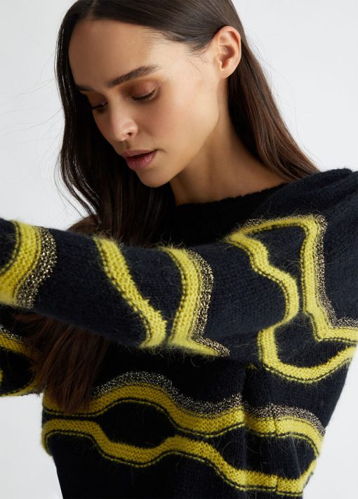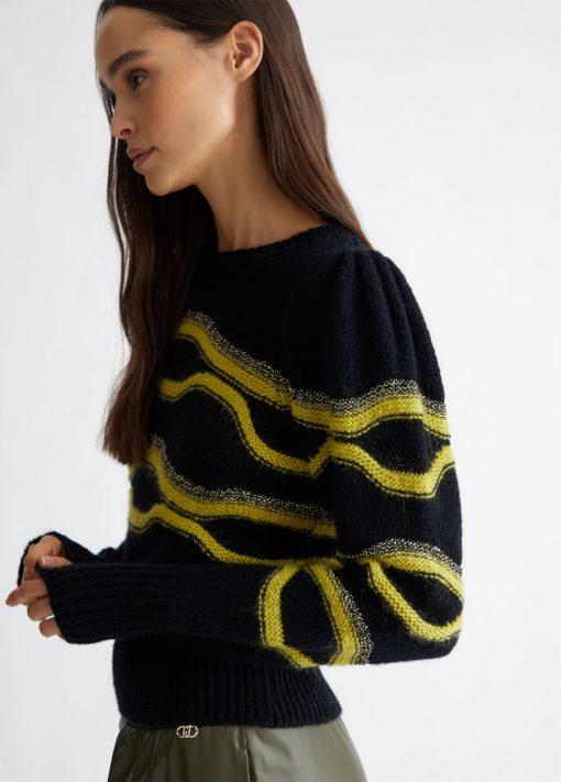 Maglione Jacquard Misto Alpaca Nero/Giallo Liu Jo