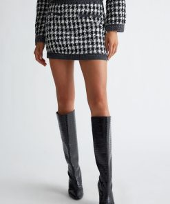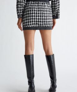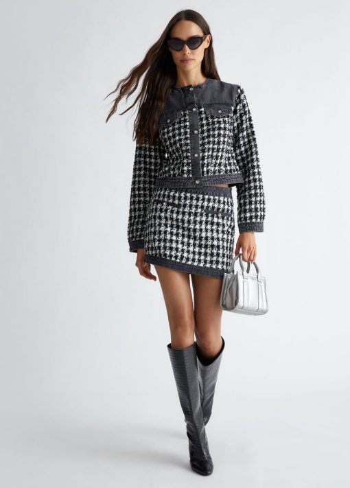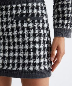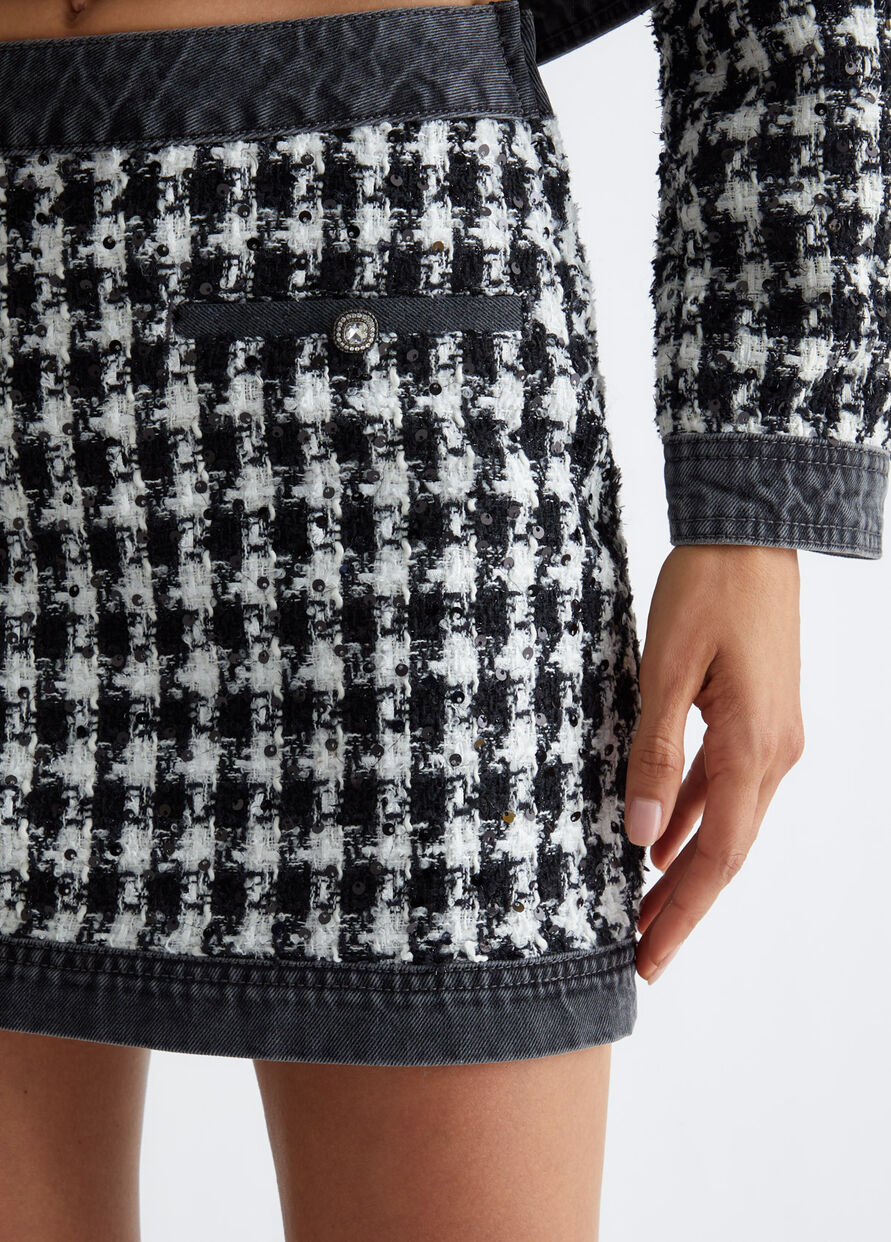 Minigonna in denim e bouclé Motivo pied de poule jacquard con strass Liu Jo