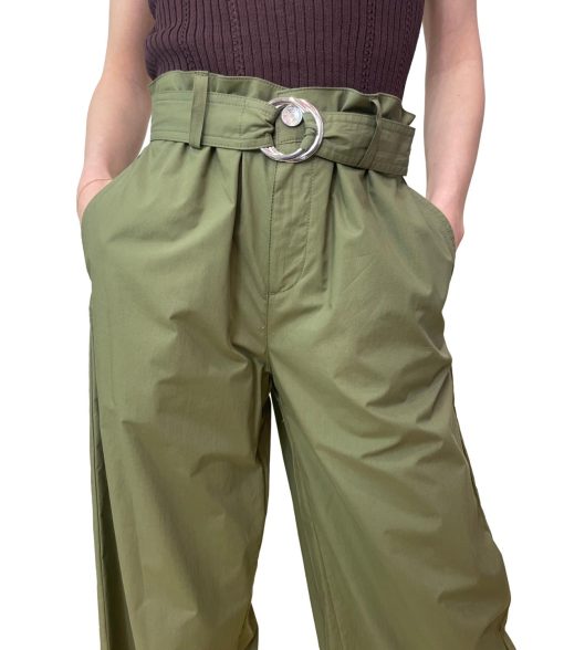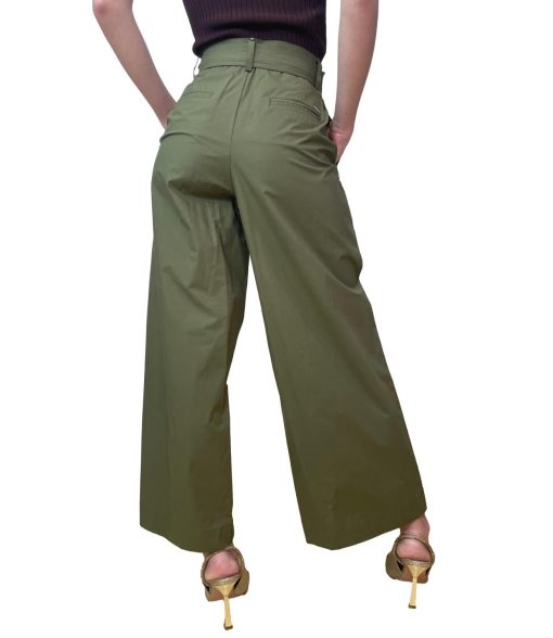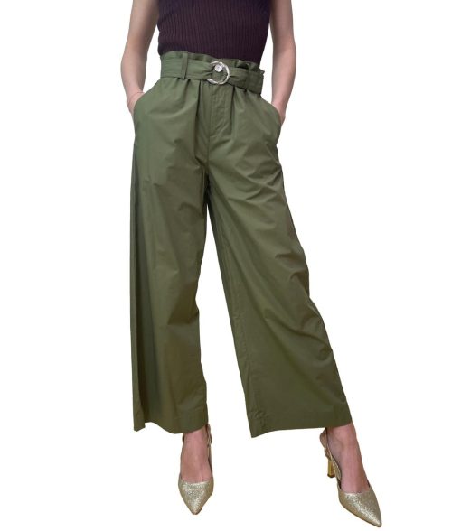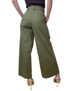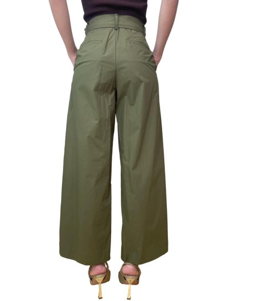 Pantaloni a palazzo cropped colore verde cinta in vita Liu Jo