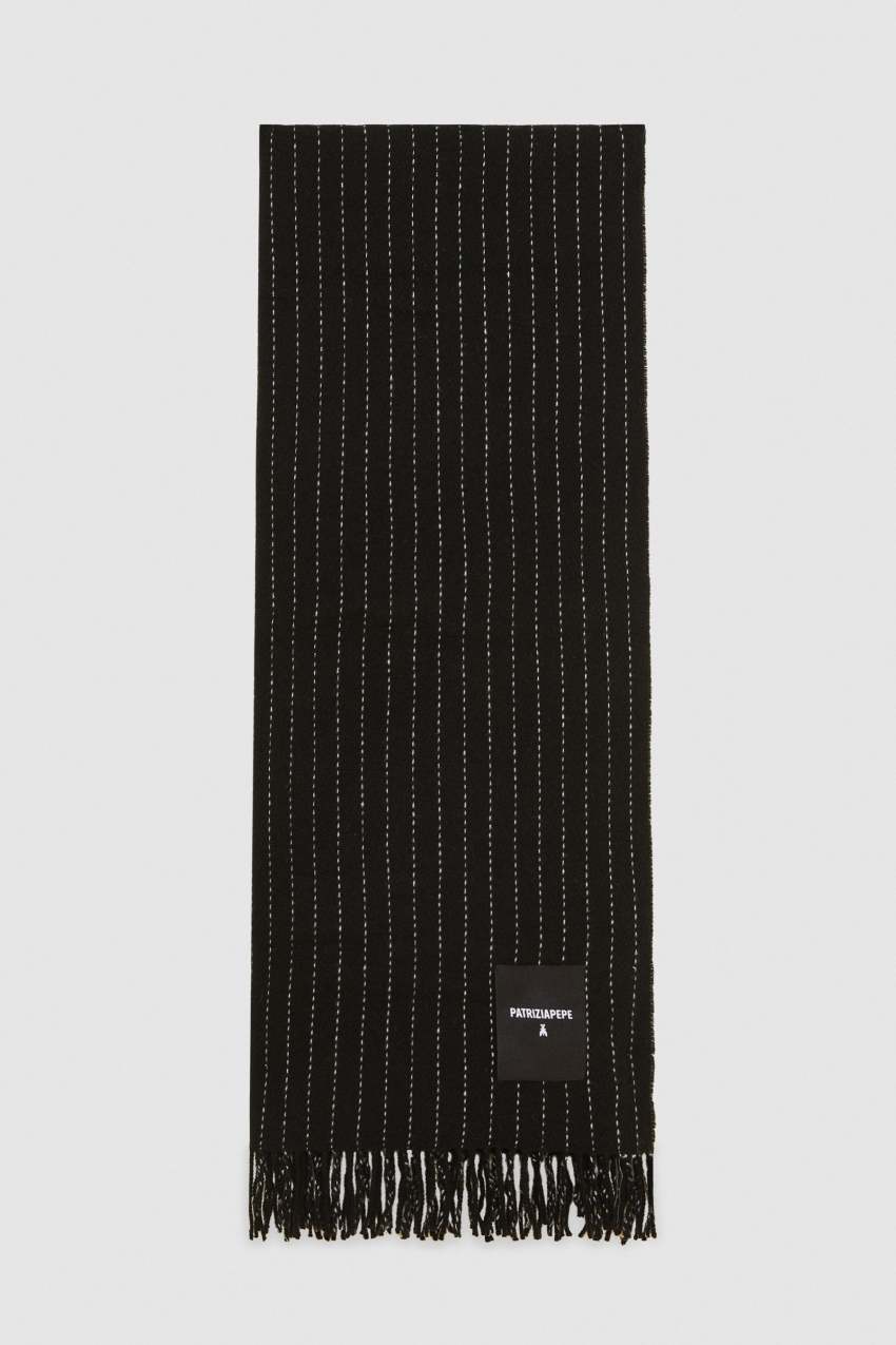 Sciarpa Gessata Tessuto Misto Lana Grigio e Nero Patrizia Pepe