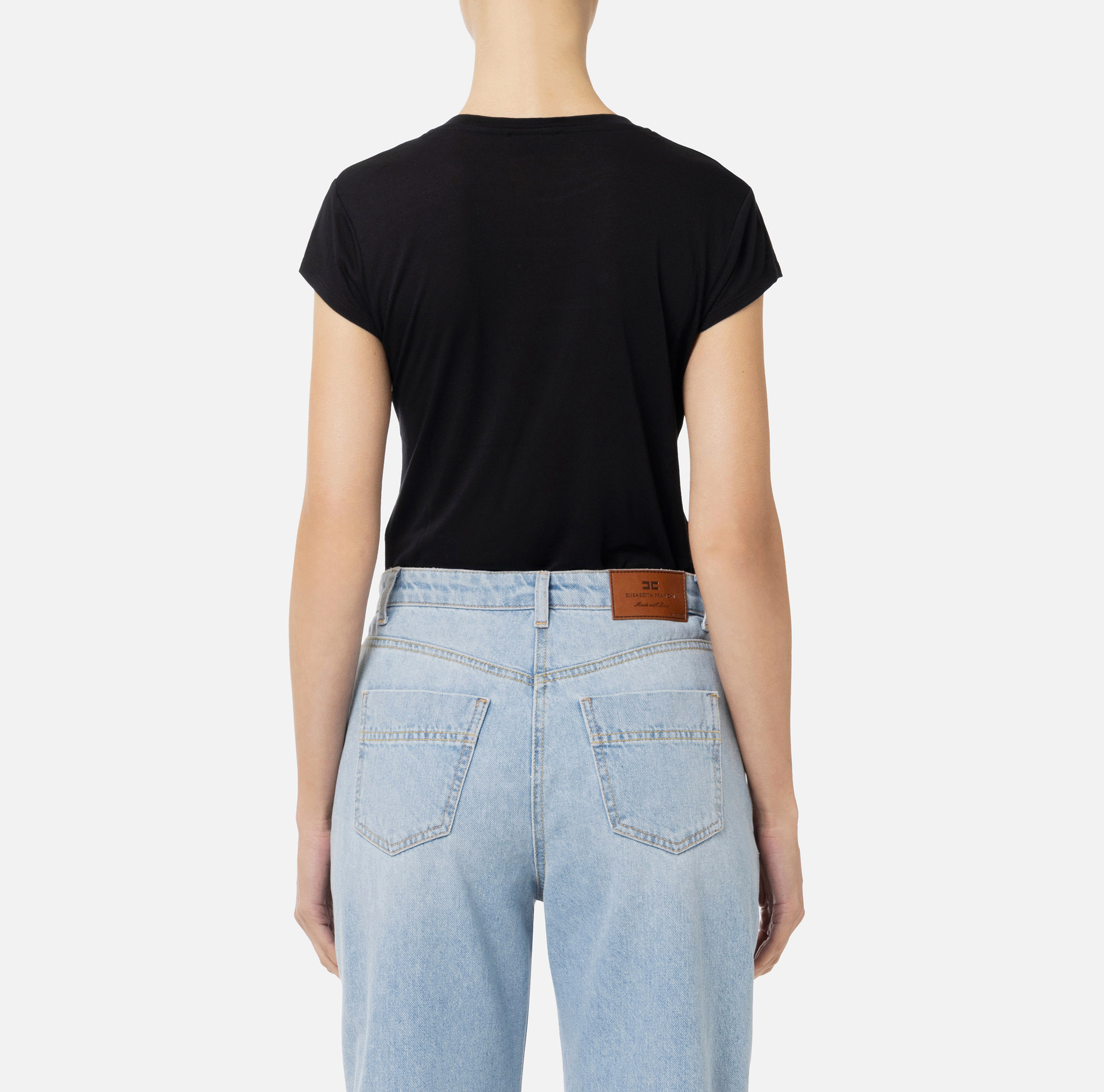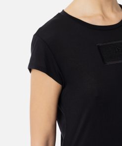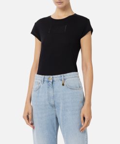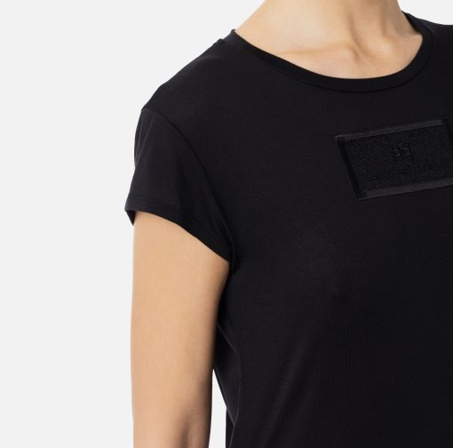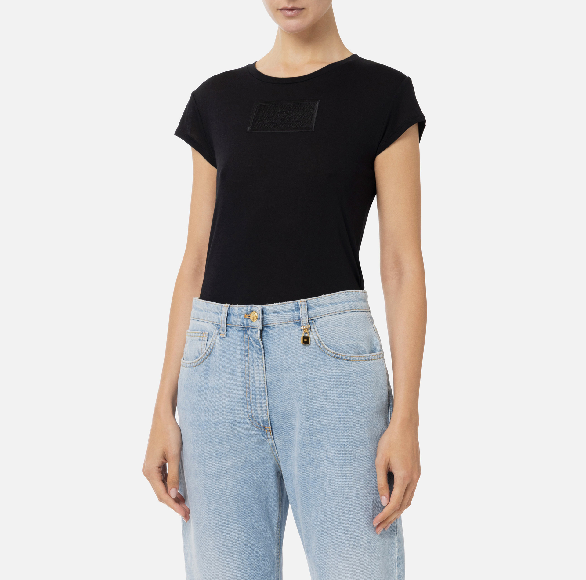 Maglietta a maniche corte in jersey con spalle ad aletta e vestibilità slim. Il capo si distingue per la patch traforata con logo e ricamata in filo.